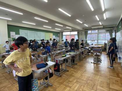 スポーツフェスティバルでは、準備運動を兼ねた全校ダンスを行います。今日はダンス係が各クラスに来て、ダンスのレクチャーをしてくれました。各学年によって振り付けが異なるところやウェーブをそろえるところがあるので、教えてもらったことを生かしてしっかりと踊り切りましょう!