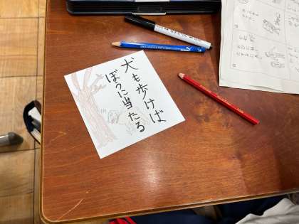 国語「ことわざ・故事成語」の学習で、かるたづくりをしました。カードにことわざや故事成語を書き、その意味をよまれたらカードを取るというルールです。来週のかるたに向けて、カードの意味にあった絵を描いたりと準備万端の子どもたち。本番はたくさんのカードが取れるように頑張りましょう!
