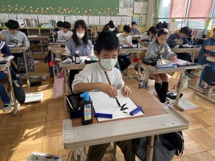 今回は『初春』という字を書きました。これまでに学習したことを振り返りながら、一画一画ていねいに書き進めました。書きぞめは正月休みにやることが多いです。冬休みの間に書き初めならではの長い文字の習字に挑戦してもいいかもしれませんね!
