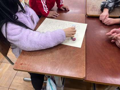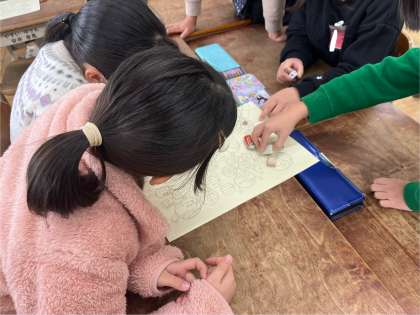 「冬休みどこに出かけた?」「食べておいしかったものは?」「冬休みに読んで面白かった本は?」など止まったマスに書かれている質問について楽しそうに答えながら活動することができました。