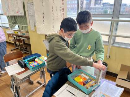 家庭科では新しい単元「物を生かして住みやすく」の学習に入りました。今日は、身の回りを整えることのよさや必要性について考え、整理整頓の手順を知り、実際にお道具箱を整理整頓しました。それぞれに片付け方が違うので、どんな工夫をしたのか、どんなことを意識して片付けたのか交流し合いました。3学期の間、今日の状態をキープしてくれることを願います!!!