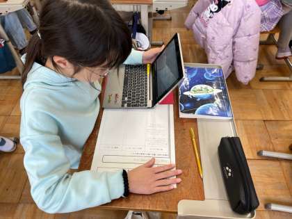 国語科では意見文を書く学習に入りました。ふだんの生活の中で「こうしたらよいのにな。」ということを題材にして、主張や根拠を大切にしながら文章に表します。まずは、明確な主張をもつためにも、題材についての取材をしました。取材方法は様々。インターネットで調べたり、図書室の本で調べたり、アンケートをとったり、インタビューをしたり、自分たちで選択しながら取材を進めることができました。