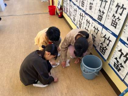 家庭科では、整理整頓や清掃にの必要性や方法を学んでいます。前回見つけた、教室や校舎の汚れを、実際に清掃の手順に沿って、工夫しながらグループの友達と協力してきれいにしました。