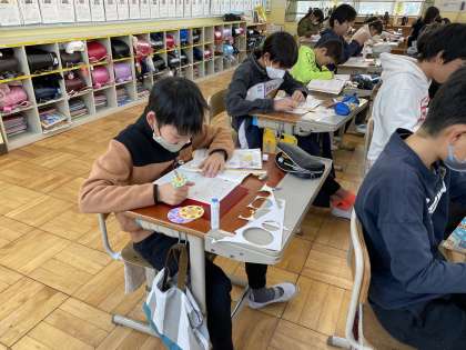 算数の授業の様子です。おなじみ「円周率=3.14」つまり円周は直径の3倍以上であることを教科書に付いているマシンを使って確かめました。どんな円の周りの長さも直径のおよそ3.14倍になっていたようです。この「3.14」の数字、覚えておきましょう!