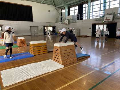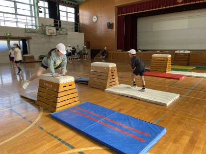 体育科は新しい単元に入っています。久しぶりの跳び箱運動です!「去年、何段まで跳べたかな。」「どの技ができるようになっていたかな。」去年までのことを思い出して、とても楽しみにして授業に臨んでいました。初回は場の準備やカードの使い方を確認した後に、ねらい1の「できる技の高さや美しさを上げる」に挑戦しました。跳び箱運動の時のきまりを確かめていざ今年度初ジャンプ!さて、何段まで跳ぶことができたでしょうか?子どもたちに聞いてみてください。