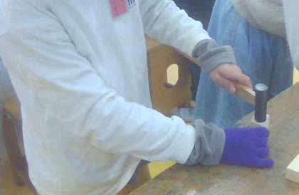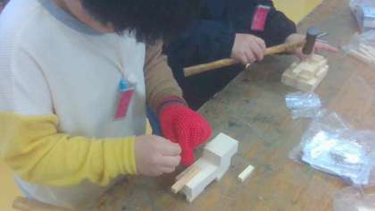 図画工作科の学習で、釘や金づちを使った学習を始めました。初めて金づちを持った子もおり、金づちの重さや釘の打つ感触を確かめながら作業を進めていきました。慎重に、でも楽しそうに作品を作る姿がありました。来週は、作品を仕上げます。
