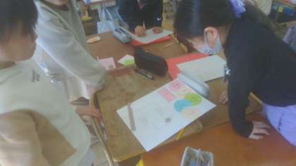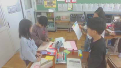 総合的な学習の時間には、地域の人たちがどんな活動をどのような思いでしてくださっているのかについて調べてきました。その結果、保護者のみなさんも地域のみなさんも、私たちのために様々な活動をしてくださっていることを知り、感謝の気持ちを伝えることにしました。今週は、お世話になっている方々や学校のみなさんにむけて、自分たちの考えや思いを伝えるポスターを作っています。完成したら、まずは学年のみんなに発信しにいこうと考えています。