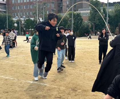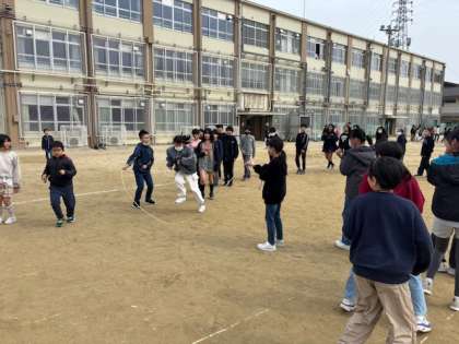 雨で延期していた大なわ大会が、13日の中間休みに行われました。