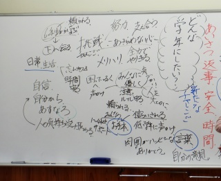 子どもたちからたくさん溢れてきた思いをもとに、学年の目標をつくり上げていきます。