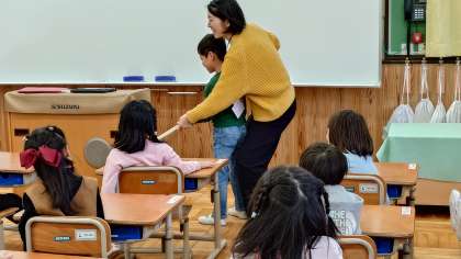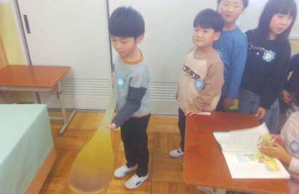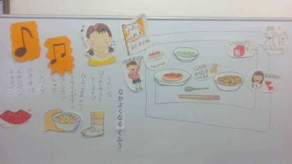 いよいよ給食が始まります!今日は、山田先生から給食調理員さんを紹介していただいたり、給食を作っている道具や、おかずの役割について教えていただきました。給食がより楽しみになりました。