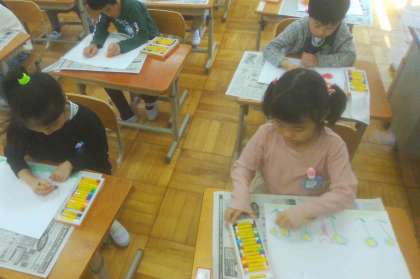 みんなが好きなものは何かな?どんな色が好きかな?みんなで話した後、クレパスを使って絵を描きました。絵は、参観日に掲示する予定ですので、ぜひご覧ください!