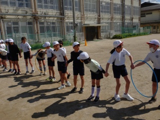2人組でストレッチをしたり、みんなでレクリエーションをしたり、とても盛り上がる時間になりました。これからの体育でも、仲間と様々な形で関わり合いながら学習を進めていきましょう。
