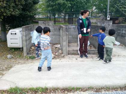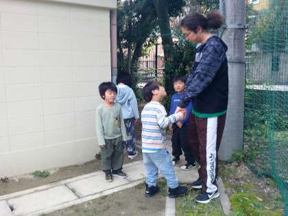 今日は運動場で「危ない所探し」をしました。子ども達はよくわかっていて、指差しをしたりして友だちに教えていました。「なんで入ったらあかんの?」と質問も飛び交い、説明のチャンスをくれました。