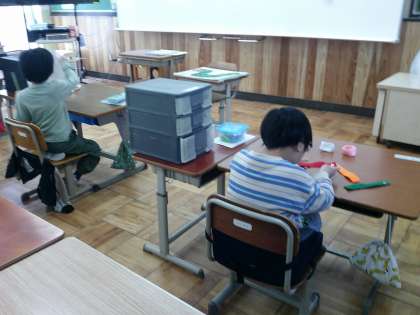 後半は、それぞれに適したプリントや、具体物を使った学習をしています。ここで取り組んだ内容と同じもの、もしくはそれに近いものを宿題に出しています。宿題も頑張って取り組んでいて嬉しいです。
