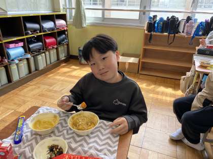 給食が始まりました。初日のメニューはスパゲッティ、2日目のメニューはカレーでした。しかも、カレーにはいきなりラッキーキャロットが!早速入っていて、子どもたちはとても喜んでいました。6年生は身体がとても大きくなる大事な1年です。給食調理員さんが作ってくださるおいしい給食を食べて元気に過ごしましょう!