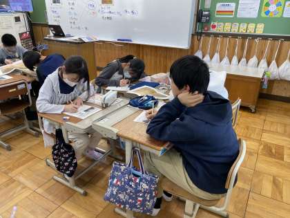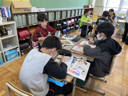 図画工作科の授業もスタートしています。最初の授業は『この筆あと、どんな空?』という鑑賞の授業をしました。晴れた空、曇り空、夕暮れなど、1つの空から感じる印象はそれぞれ違います。それに「筆あと」や「色づかい」が加わったとき、空に対する印象はどう変わるでしょうか。この2つのポイントを意識するだけで、空に対する印象は大きく変わります。次の授業では、自分だけの空を描きたいと思います。絵の具セットの用意を忘れないでくださいね!