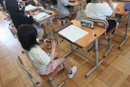 リコーダーを使い、3年生までに学習した音の復習を行いました。