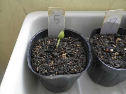 理科の学習で4年生では「ヒョウタン」を育てています。季節によって成長度合いを比べ、成長率がどのように違うのかを学習します。ついに昨日、種から植えたヒョウタンの芽があるグループで出ました。これからどんどん芽が出てきて成長していくのがとても楽しみです。