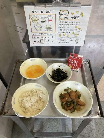 5月7日の給食 〜ふしぎな寒天デザート〜