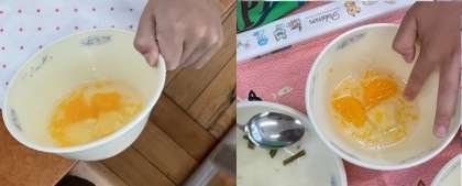 器を傾けては「かたまってきた!」、スプーンで表面をつついては「かたい!」と驚きの声があちこちからあがります。