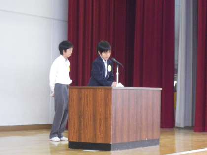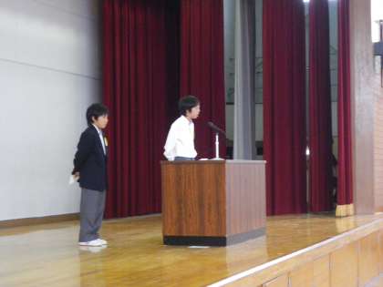今日から4日間、西京極中学校2年生がチャレンジ体験で葛野小学校に来てくれました。二人とも本校の卒業生です。職場体験として本校を選んでくれたことをうれしく思うとともに歓迎します。早速8時から校門で「おはようございます」と在校生に声をかけています。朝会では、自己紹介をしてもらいました。おもに2年生の教室で学習をしてもらいます。部活動にも参加してもらいます。ぜひ先生になって葛野に帰ってきてほしいですね。