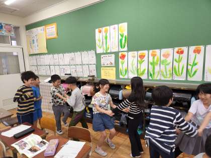 音楽の学習では、色々な国の踊りの音楽を聴きました。
