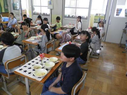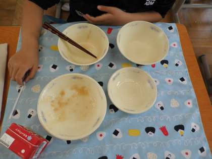 4年生になって、食べるのが苦手な子も得意な子もとてもがんばって給食を食べています。「ちょっと苦手だけど頑張って食べたで。」や「3年生より食べれるようになってきた。」という子どもたちもいて、とても頼もしいです。給食の後の食缶が空になると気持ちいい☆