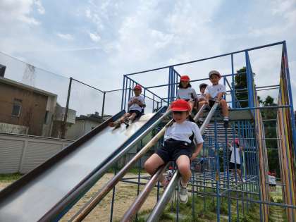 総合遊具は、初めて一番上まで上がりました。安全に気を付けながら楽しんでいました。
