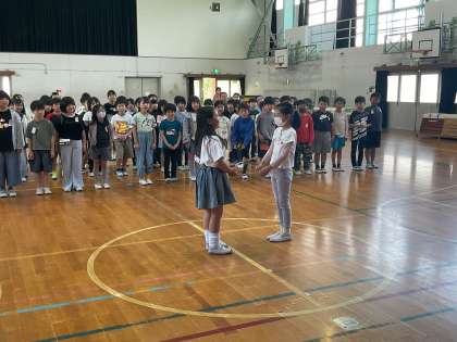 1年生を迎える会、直前練習の様子です。大きな声、大きな動きで、みんな堂々とした発表ができました。1年生から笑いが起こる場面もたくさんあり、楽しい発表になりました!