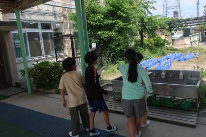 学校でどれくらいの水が使われているのか、蛇口の数を数えました。