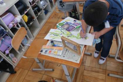 色や形などを考えながら、自分なりのまぼろしの花を描くことができました。