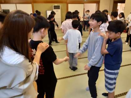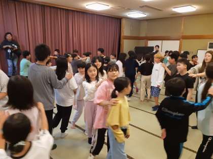 ホテルでのレクリエーションの様子です。レクリエーション係が考えたゲームや出し物で盛り上がりました。たくさんの友達と関わり、楽しい夜を過ごすことができました。