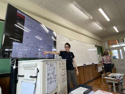 今回はALTの先生とUnit2の単元の初めの授業を行いました。最終的には、1日のうちの何時にどんなことをしているのかを英語で紹介できるようになることを目指します。ゴールの姿となるスピーチの例を示すためにスペシャルゲストが来てくれていたようで・・・?誰だったのかは子どもたちに聞いてみてほしいと思います。目指せ英語マスター!