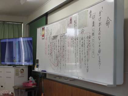 5年生の道徳の授業のテーマは「命」でした。辛く長い闘病生活の中でも決して希望を失わず最後まで懸命に生き抜いた11歳の少女が残してくれた詩を読んで感想を交流し合いました。少女のお母さんの思いも紹介したところ、涙する子どももいました。子どもたちからは「日頃当たり前に思っていることにも感謝したい。」「ゆきなさんの分まで一生懸命に生きていきたい。」「ゆきなさんもお家の方も私たちのためにこのような詩やお手紙を残してくれてありがとうという気持ちです。」という感想がありました。