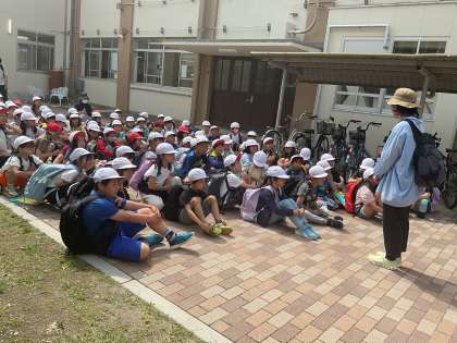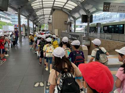 社会科「京都市の様子」の学習で、京都駅に社会見学に行きました。みんなで市バスに乗って、町の様子を見ながら駅に向かうことができました。