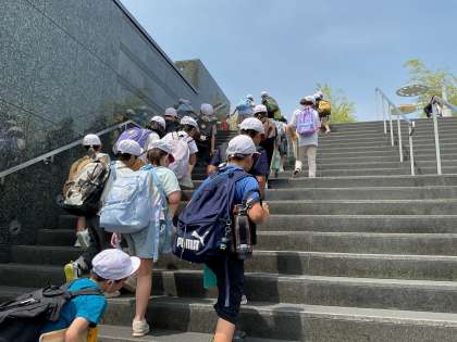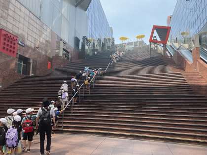 京都駅名物、大階段。屋上から街の様子を見るために、みんなで階段をのぼりました。ミッションは「大階段は何段か数えよう」。「1、2、3…。」と段数を数えながら一生懸命のぼりました。ミッションの正解は【171段】屋上までいくと、190段を超えました!友達と励まし合いながら、頑張ってのぼることができました。