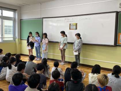 今年の総合的な学習の時間がスタートしました。今年は『大黒柱 for future』という名のもと、キャリア教育を行う予定をしています。6年生ながら、これからどんな自分になりたいか、どんなことを頑張っていきたいかなど、将来をイメージしながら進める単元になります。今回は、4月からの1か月半を、学年目標の4つの項目に沿って振り返りました。また、修学旅行の思い出を作文にしたので、その中から代表で5人の人に読んでもらいました。それぞれの思いがたくさん込められた素敵な作文でした♪