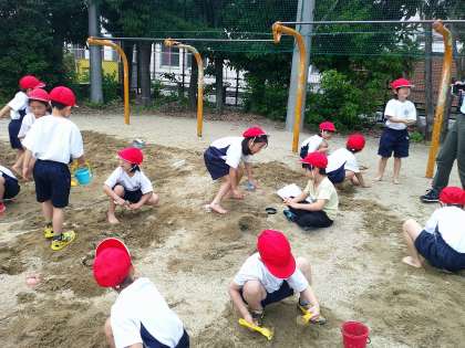 上手にトンネルを作っていました。知らないうちにたくさんの友だちができたようです。造形遊びの良さですね。
