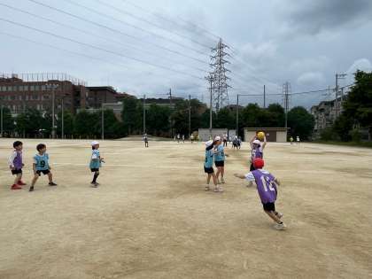 体育でエンドボールの学習に取り組んでいます。チームごとに作戦を考え、協力しながら頑張っています!