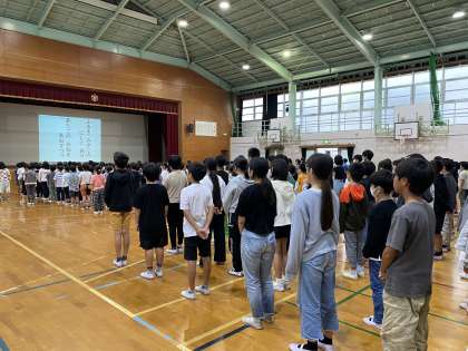 6月の朝会がありました。修学旅行に一緒に行ってくださった校長先生から、修学旅行についての話もありました。友だちを大切にしていたり、時間をしっかりと守って行動できていたりした部分は、普段の学校生活に生かしてほしいと思います。休み明けの校歌、大きな歌声でとても良かったです!