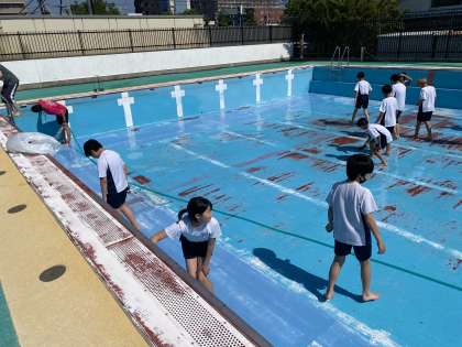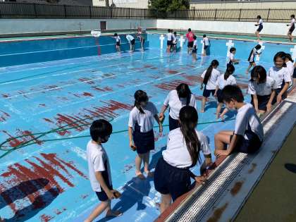 もうすぐ始まる水泳学習。その準備のために、6年生でプール清掃を行いました。「これまでの6年生もずっとしてくれていたんだな。」そんな思いを持ちながら、頑張って掃除を進めてくれました。自分たちできれいにした水泳学習、楽しんで頑張っていきましょう!