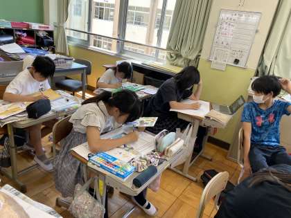 1組も色塗りの段階に入っています。前回の「この筆あと、どんな空?」の単元で学習したことを生かして丁寧に塗り進めてほしいと思います。次の2時間も集中して頑張りましょう!