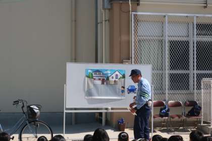 右京警察の方に来ていただき、自転車の乗り方や交通ルールについて教わりました。