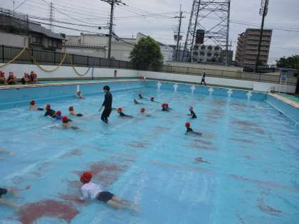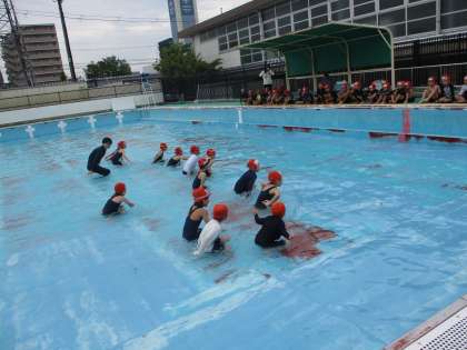 楽しみにしていた水あそびの学習が始まりました!さすが2年生。昨年学習したことをよく覚えていてプールサイドでもきちんと並んで待てています。今週は水慣れなので水位が低いですが「あひる」や「カエル」「わにさん」など動物になり切って水の中での活動を楽しみました。安全に気をつけながら学習を進めていきたいと思います。