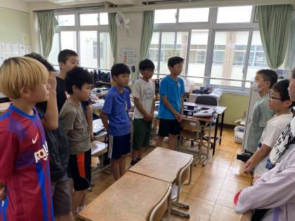 5年生の山の家が近づいています。係活動も少しずつ進んでいるようですが、今回は5年生が6年生にレクリエーション係の進め方を聞きに来てくれました。去年のレクリエーション係、キャンプファイヤーや朝のつどいをしっかりと盛り上げてくれました。そのやり方を伝授します。後日再び聞きに来てくれるので、そこまでに準備しましょう!
