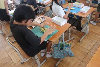 「うすくしてみる!」「思ったより力がいる!」など、試行錯誤しながら取り組んでいました。