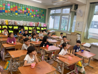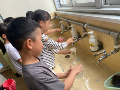 コップに水を入れて、口に含んでぶくぶくぶく。上手にうがいができました。