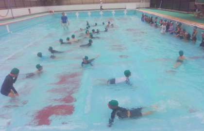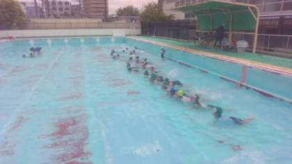 今日は、わにさんやみずかけっこ、まねっこあそびをして、水に親しみました。プールでの約束を守りながら、学習を進めることができました。