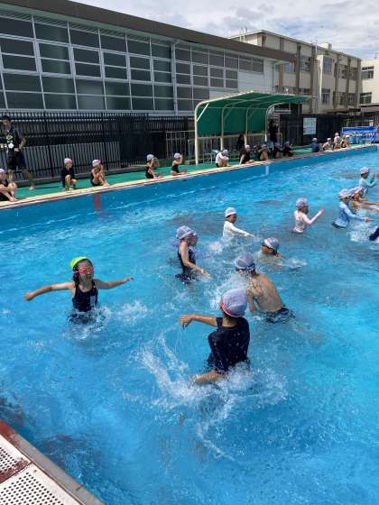 1年ぶりの学校のプール!! やっぱり地獄のシャワーは冷たい。声を出さずに…と思っていても、あっちから こっちからから「わぁー!!」「きゃー!!」 今日は、プール学習の約束事や準備運動のやり方を教えてもらったり、自分のできる事にチャレンジしたりました。次のプールをとっても楽しみにしている子ども達です。