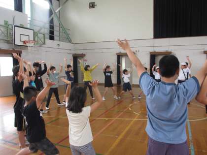 5年生のレク係は先日、6年生にレクのやり方を教えてもらいたいとお願いにいきました。その結果、「ぴよぴよさん」と「おーちたおちた」の2種類のレクを伝授してもらいました。みんなが楽しめるようにするためにはまず自分たちが楽しむことが大切だということを教えてもらいました。